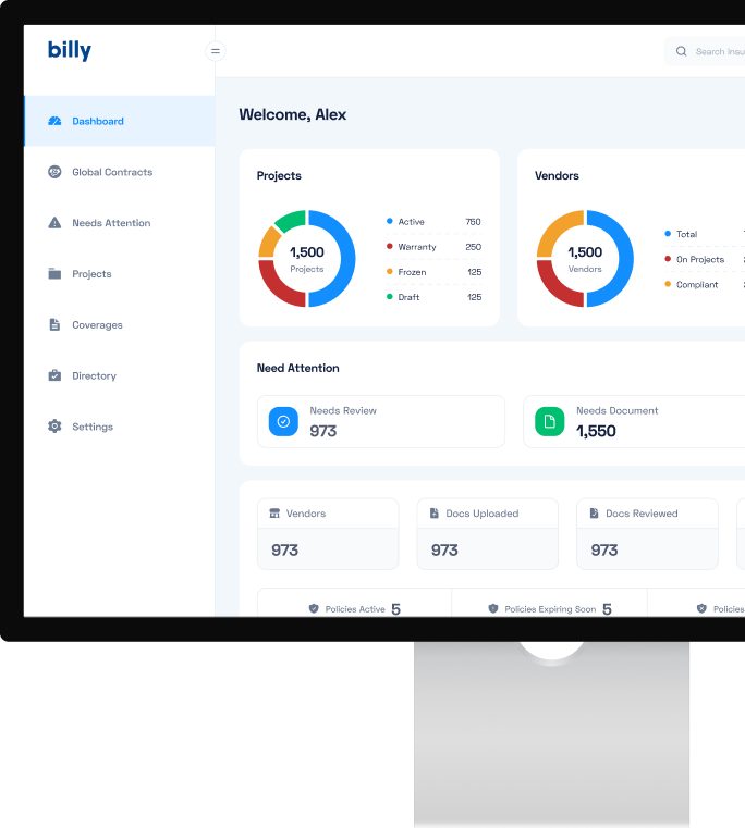 No confusing portals. No chasing GCs. Billy’s Insurance Wallet is straightforward, easy to use, and built with how subcontractors actually work in mind.